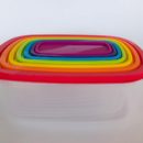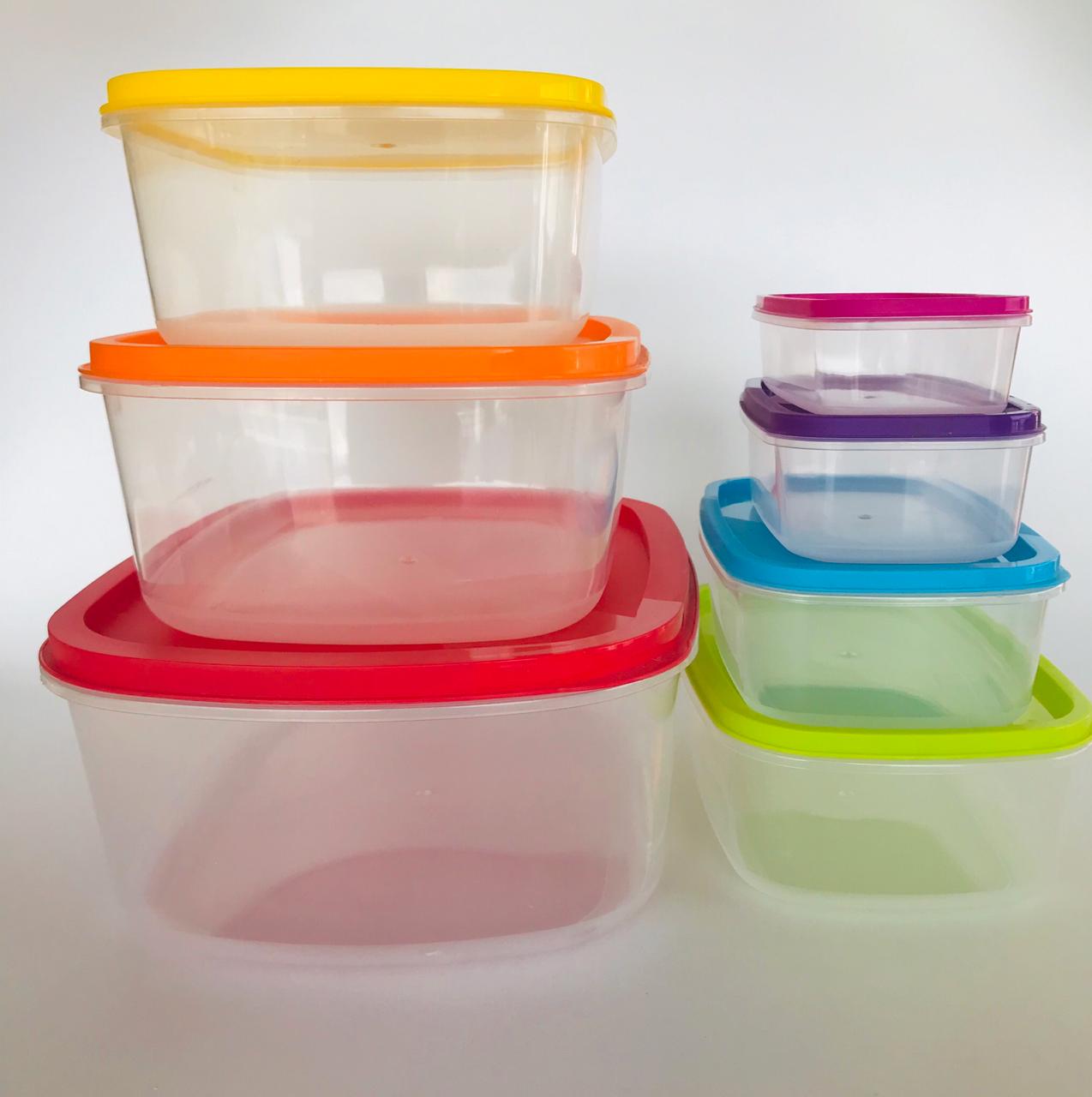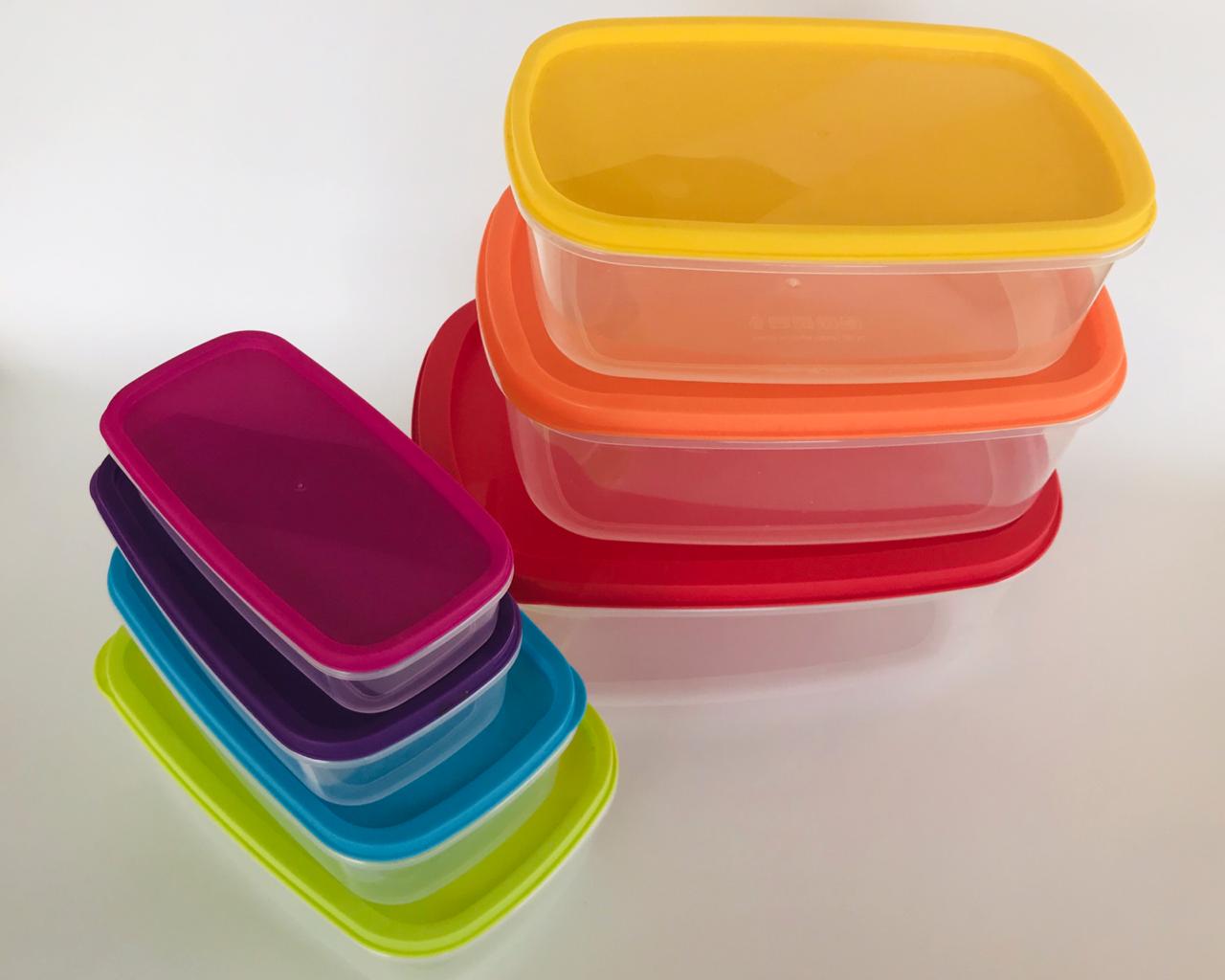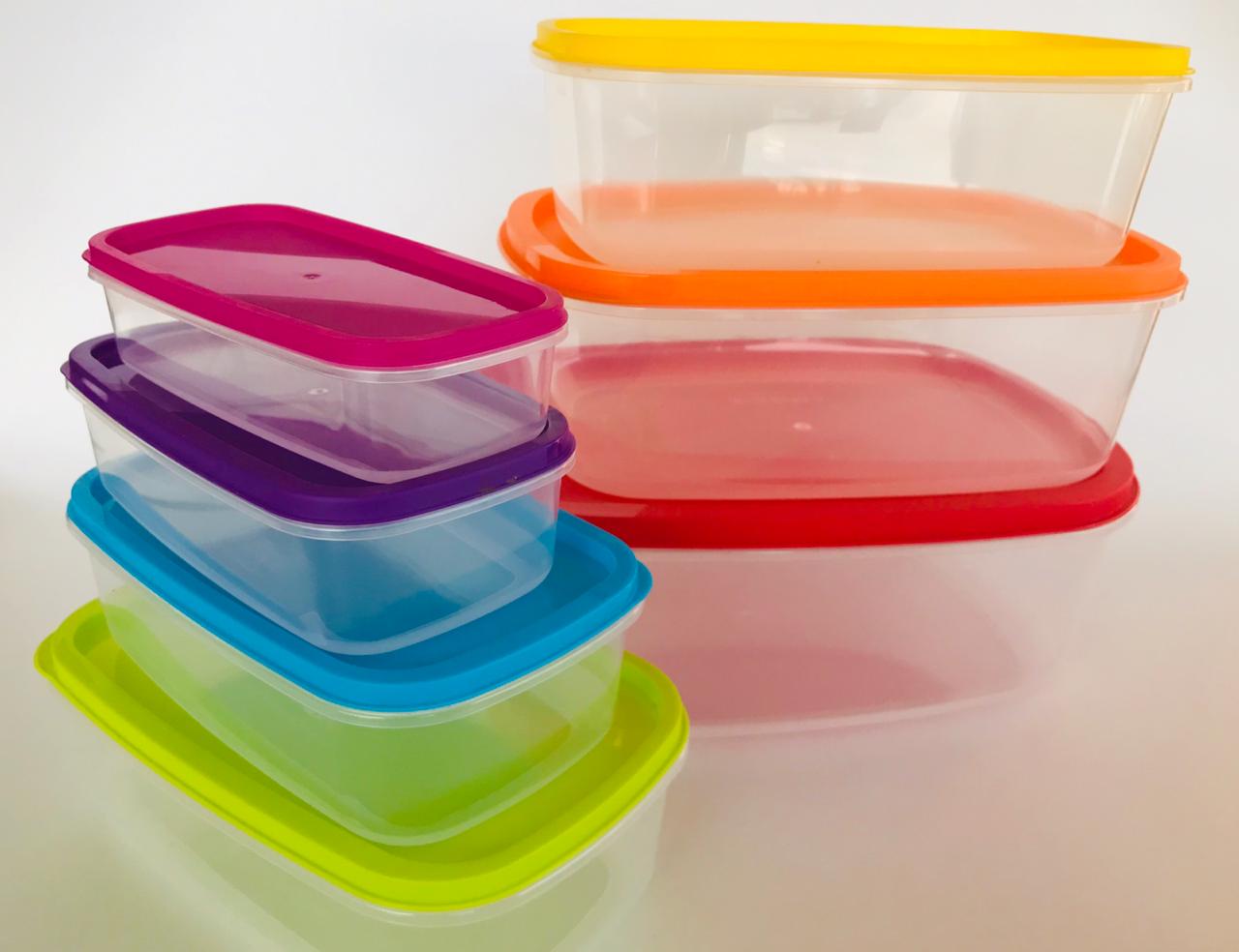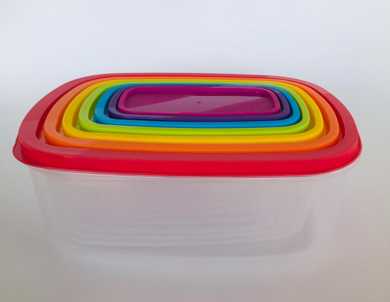 Set X7 recipientes rectángulares con tapa de colores / Material: Plástico / Garantia: 6 Meses.